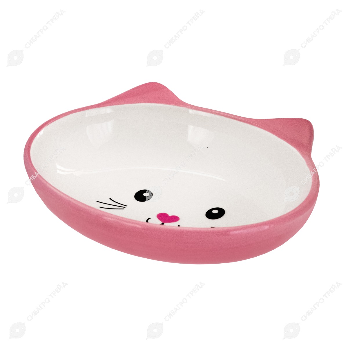 Миска керамическая овальная КОШАЧЬЯ МОРДОЧКА розовая, 200 мл