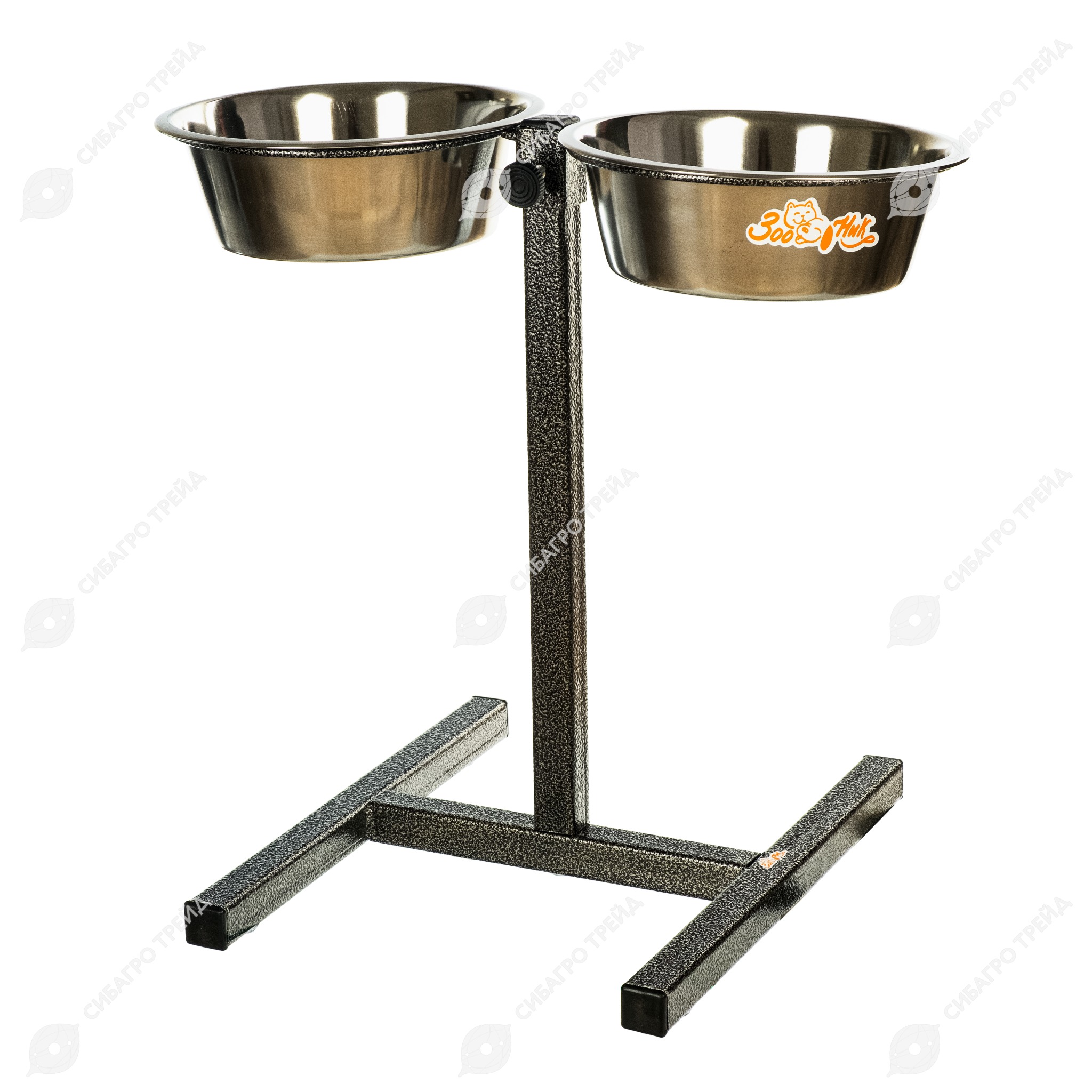 Миски металлические + регулируемая подставка, ХРОМ 2 * 4 л, ЗООНИК