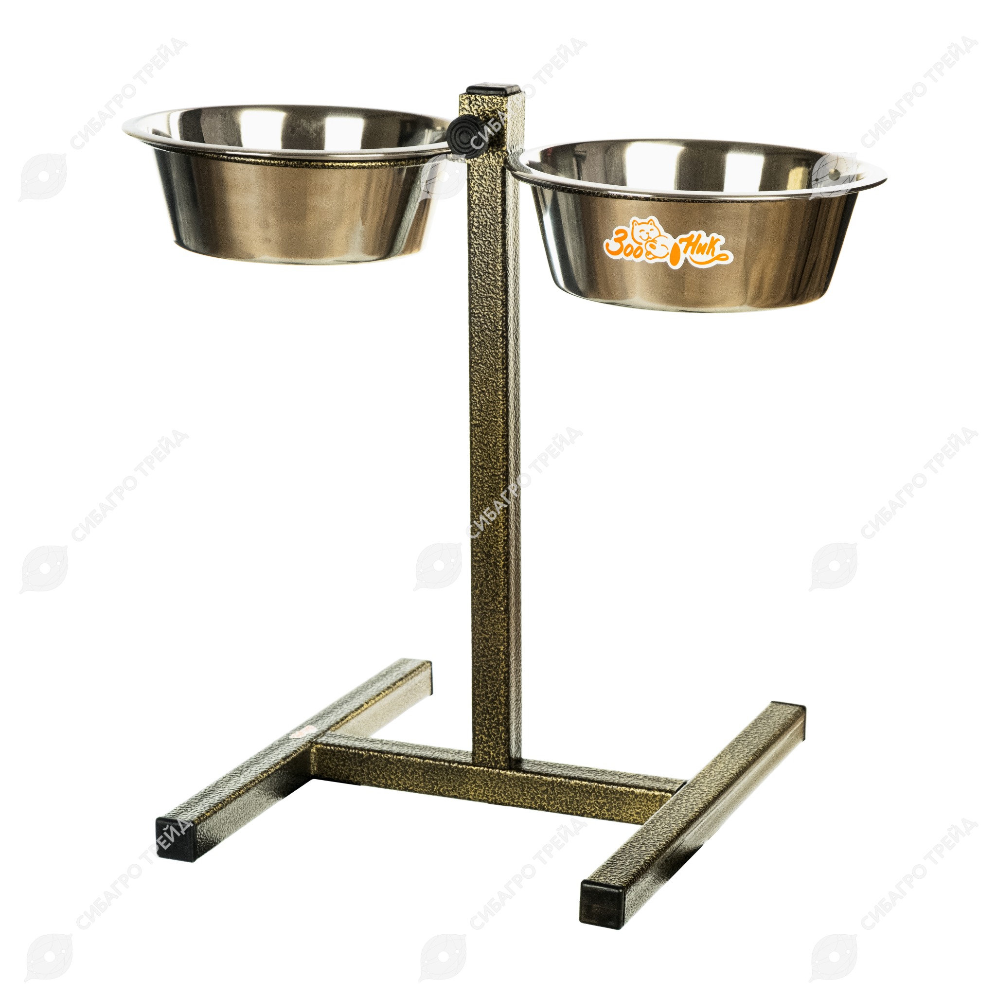 Миски металлические + регулируемая подставка, БРОНЗА 2 * 4,0 л, ЗООНИК