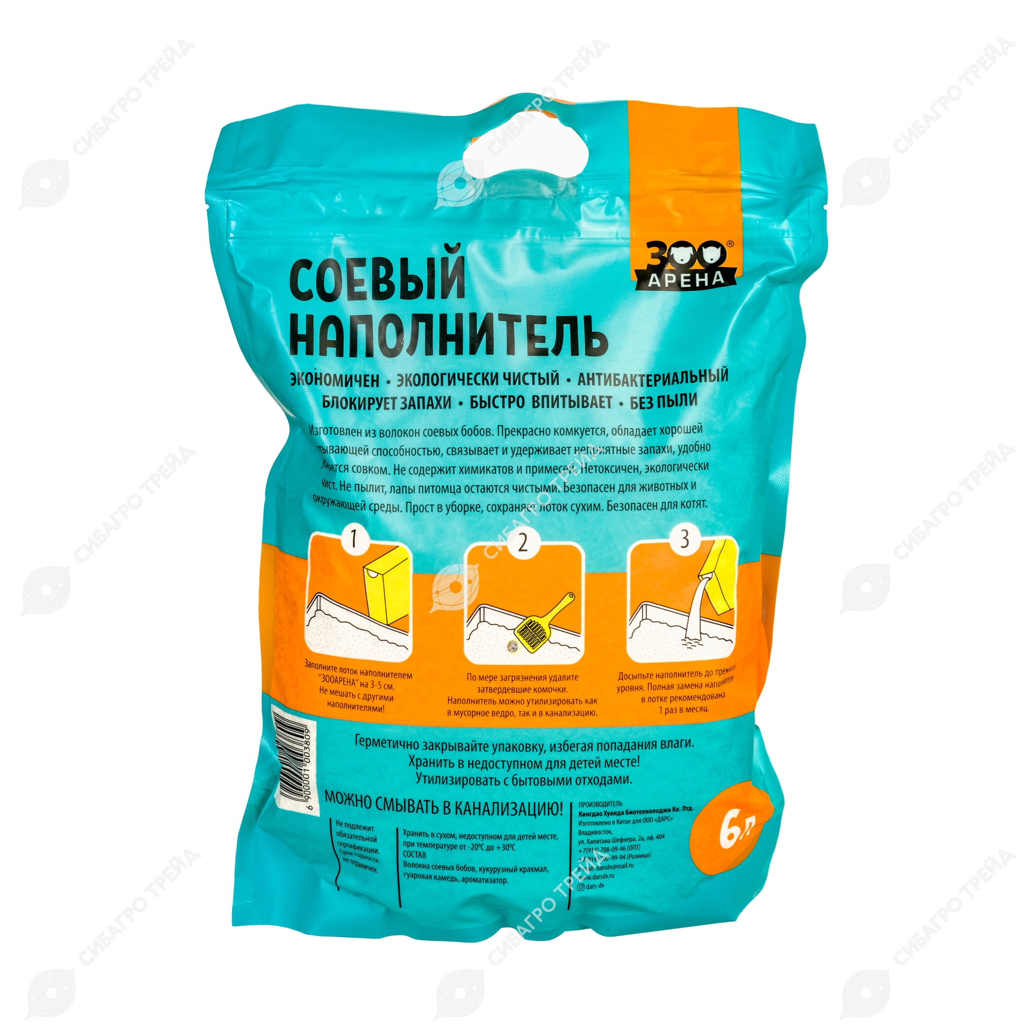 Изготовлен из волокон соевых бобов. Прекрасно комкуется, обладает хорошей впитывающей способностью, связывает и удерживает неприятные запахи, удобно убирается совком. Не содержит химикатов и примесей. Нетоксичен, экологически чист. Не пылит, лапы питомца остаются чистыми. Безопасен для животных и окружающей среды. Прост в уборке, сохраняет лоток сухим. Безопасен для котят.