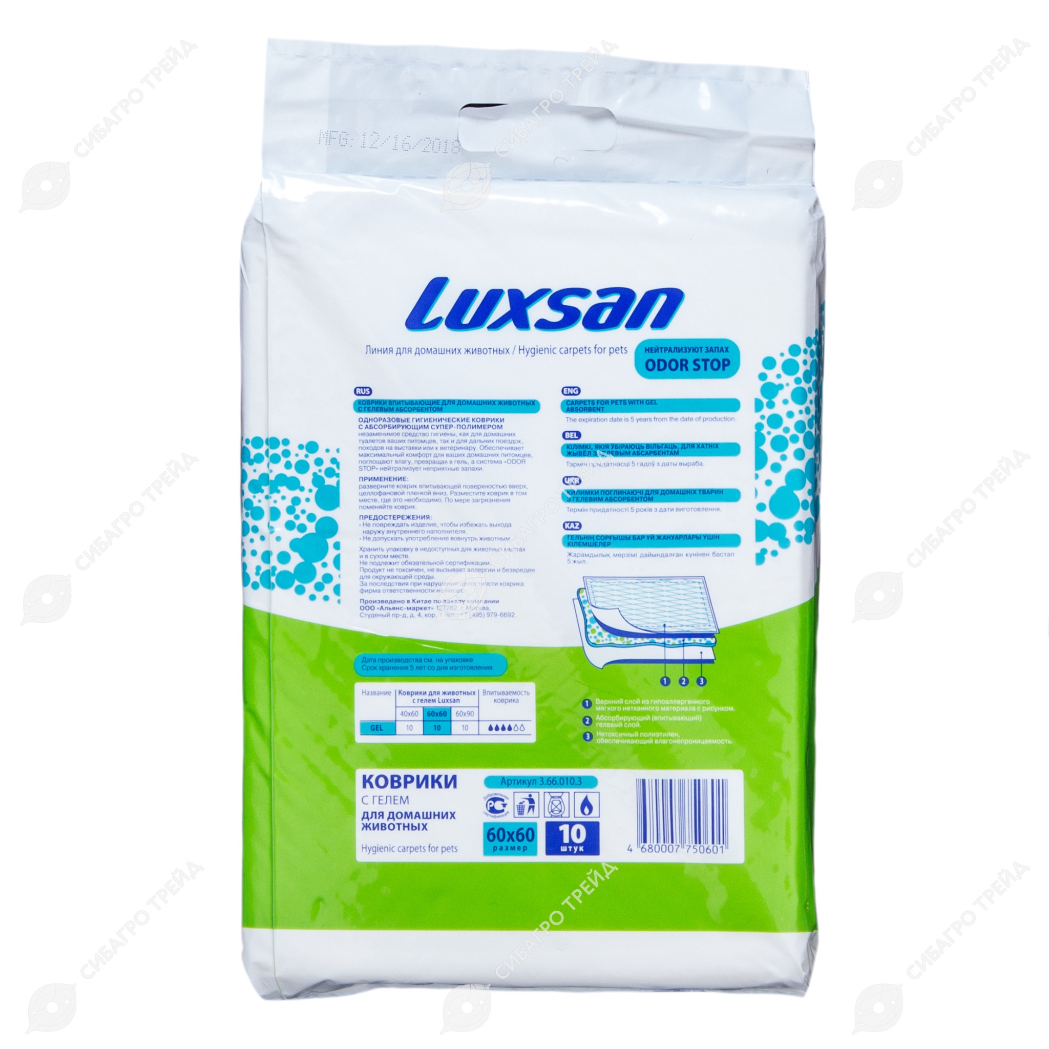 Пелёнки LUXSAN с гелем 60 * 60 см, 10 шт