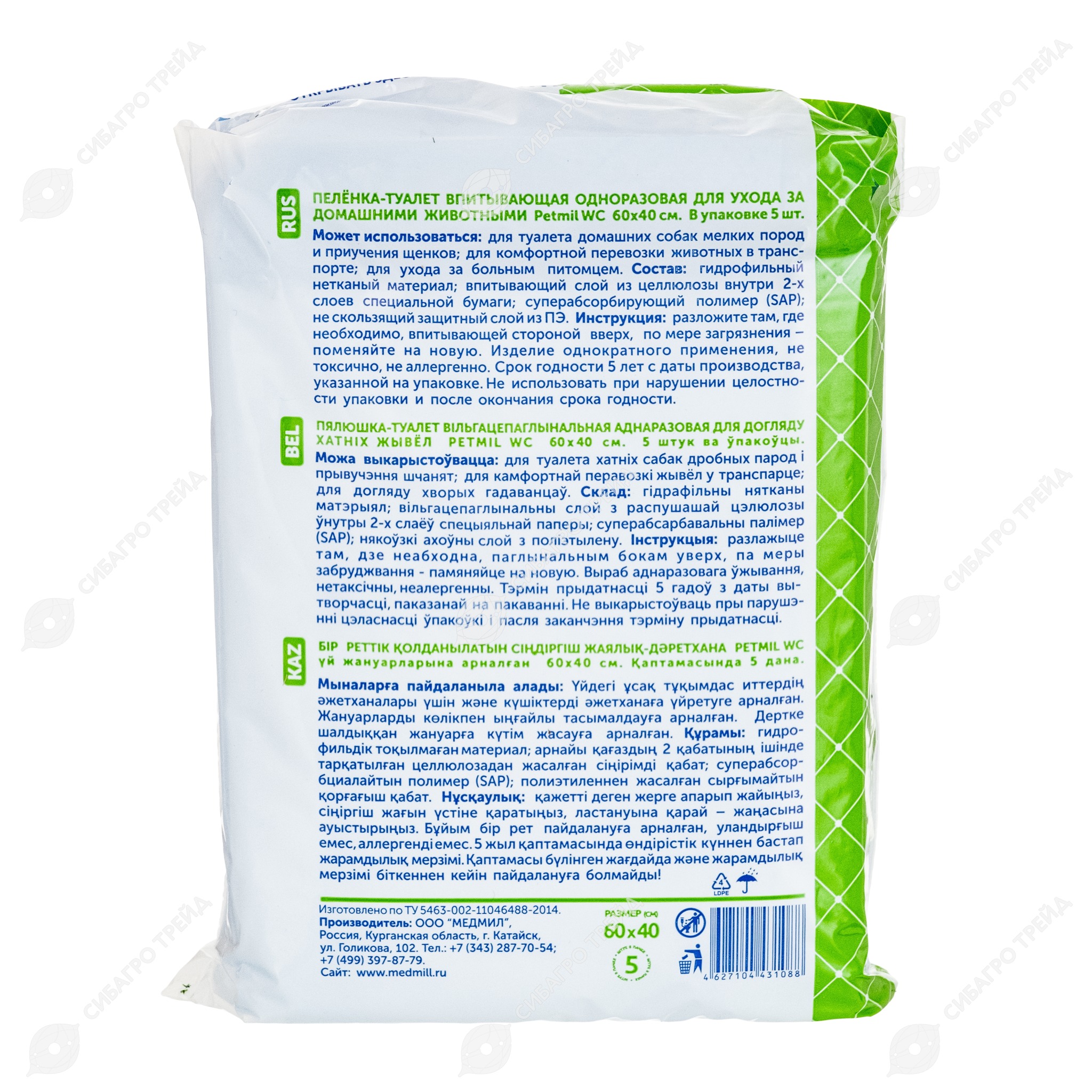 Пелёнки PETMIL с суперабсорбентом 60 * 40 см, 5 шт