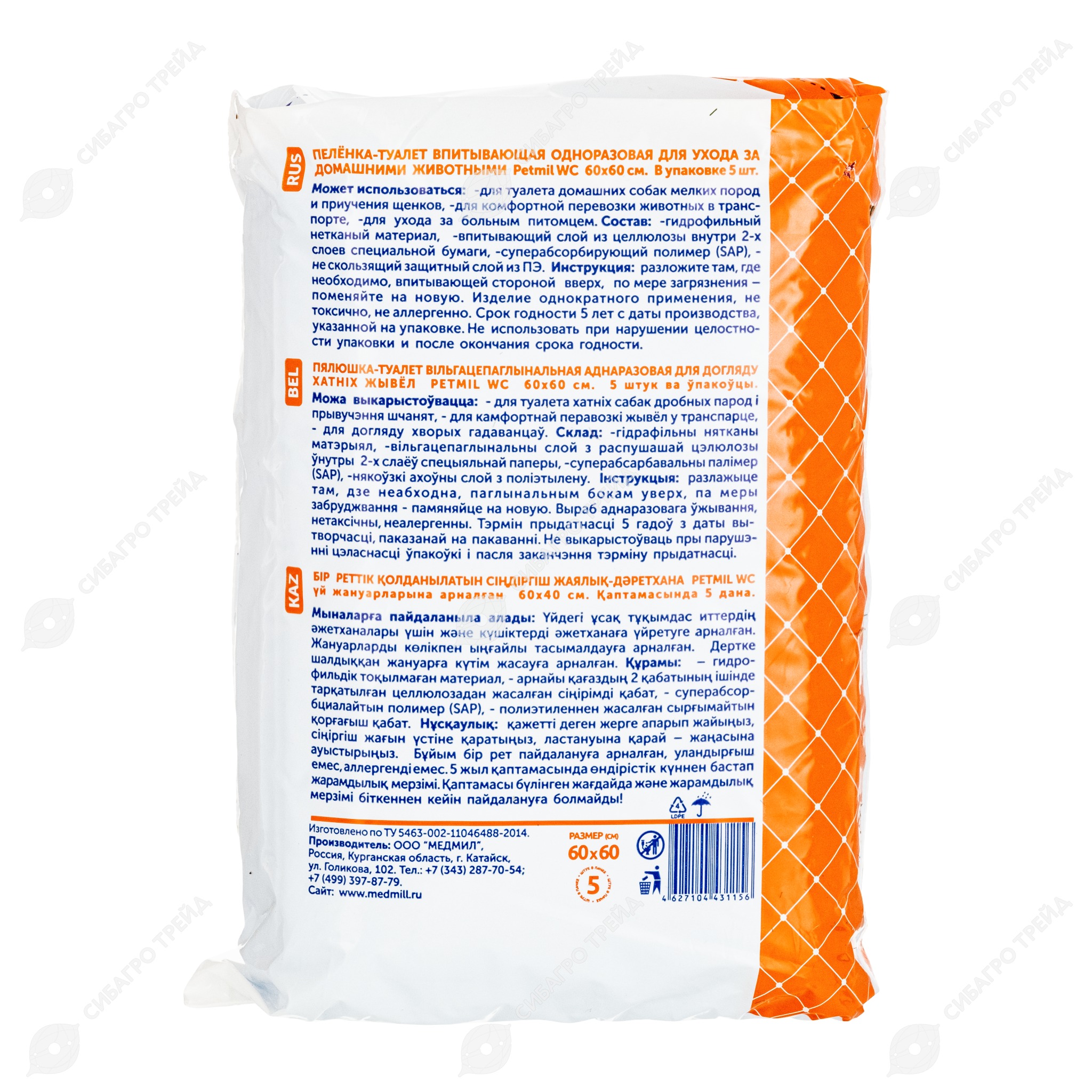Пелёнки PETMIL с суперабсорбентом 60 * 60 см, 5 шт