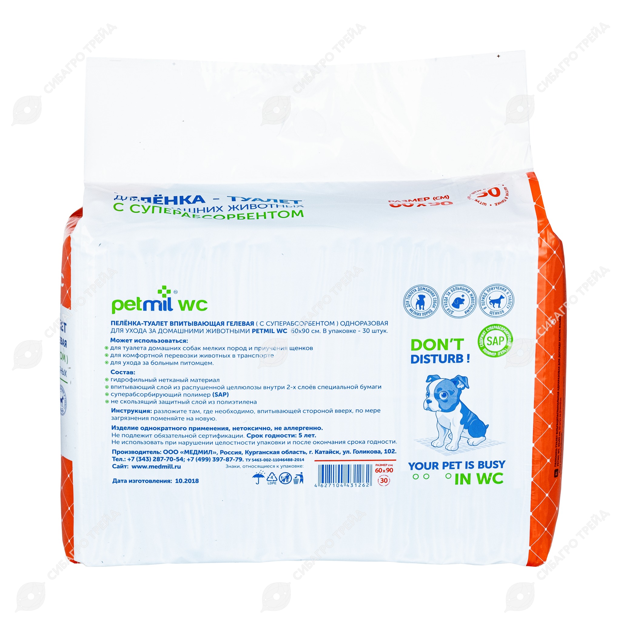 Пелёнки PETMIL с суперабсорбентом 60 * 90 см, 30 шт