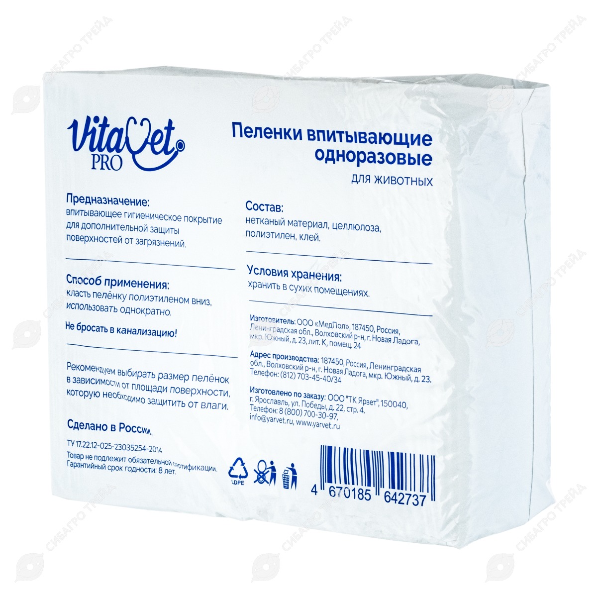 -----Пеленки VitaVet PRO целлюлозные 60 * 90 см, 30 шт