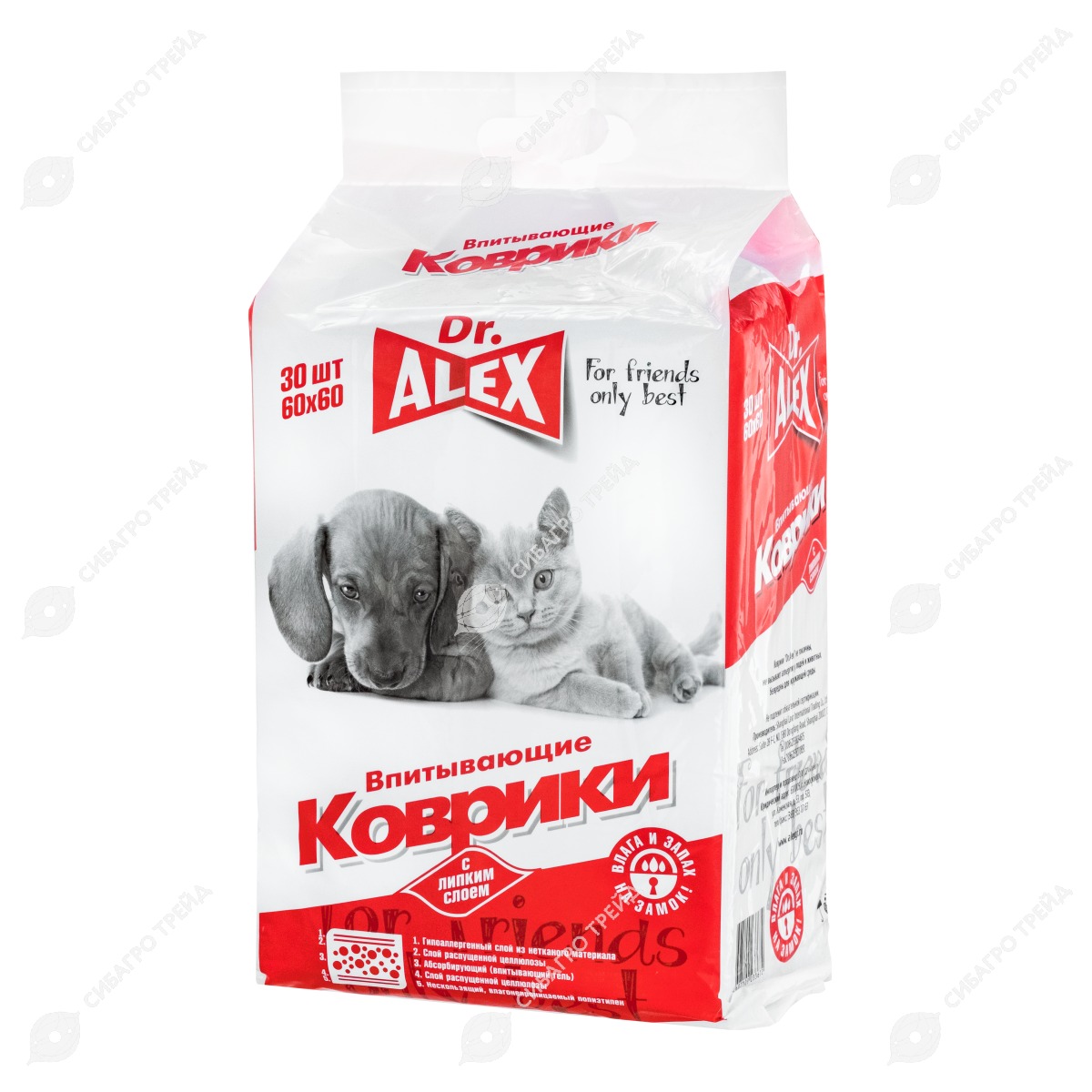 Пеленки-коврики для животных (60 * 60 см), 30 шт, DR.ALEX