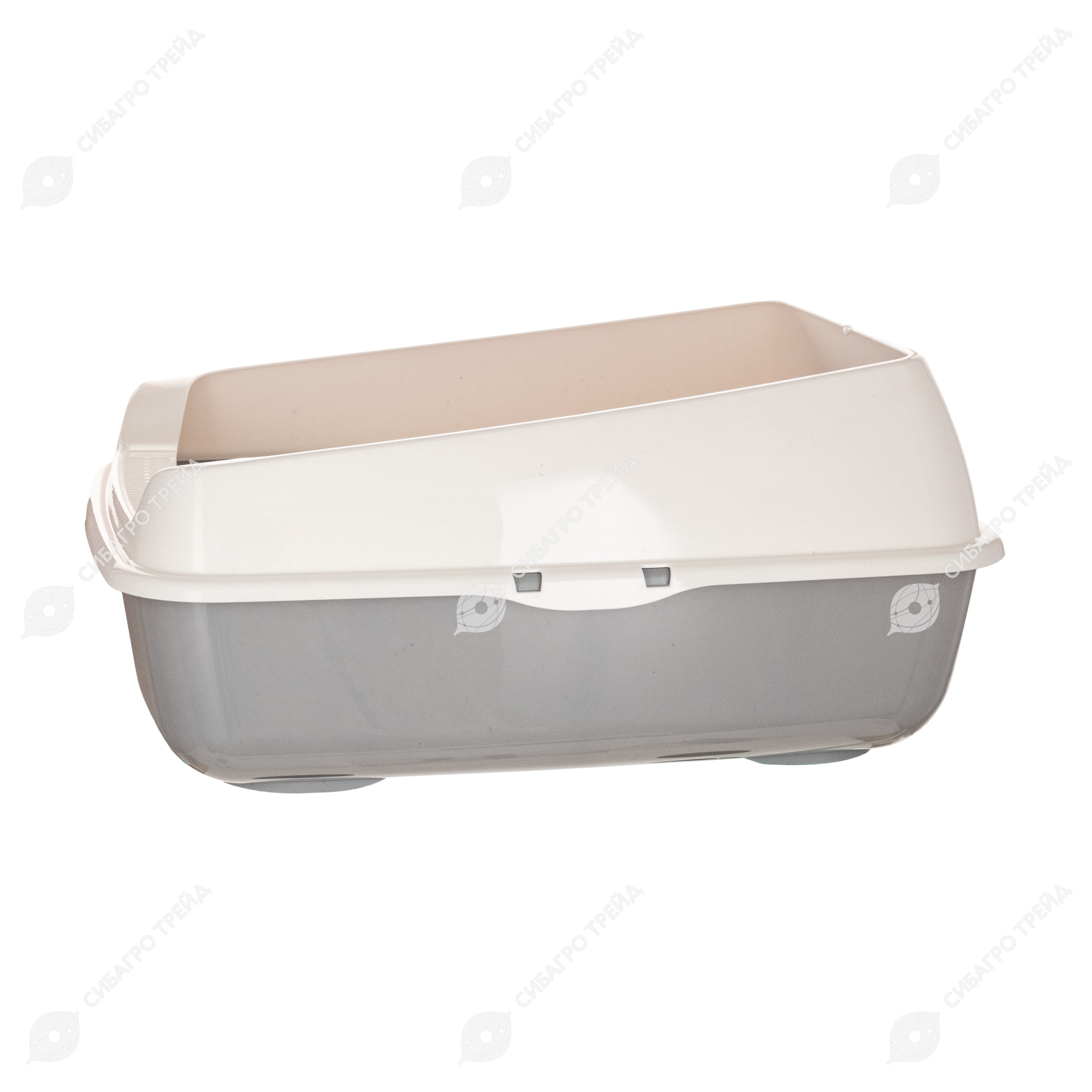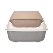 Лоток для кошек с высокими бортами изготовлен из прочного пластика, безопасен для здоровья питомца и не имеет посторонних химических запахов.