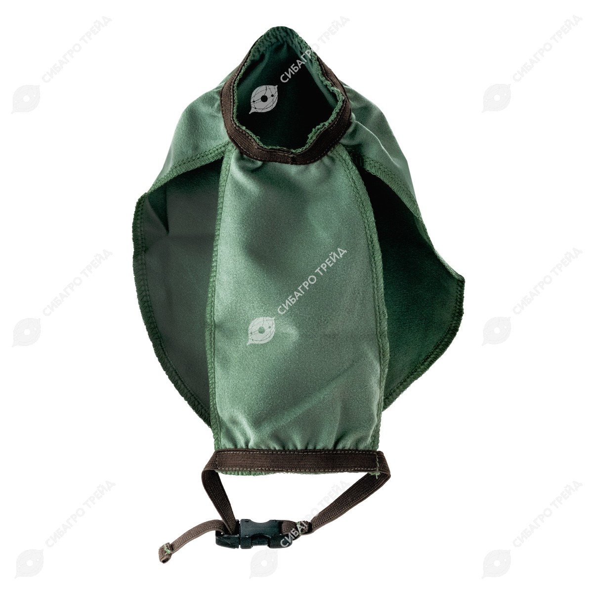 Попона сшита из двух частей, прикрывающих ― и охлаждающих ― спину и грудь собаки, спереди попона собрана на резинку для комфортной посадки по корпусу, на талии затягивается резинкой с застежкой фастекс, что позволяет фиксировать обе части попоны на корпусе и регулировать размер.
