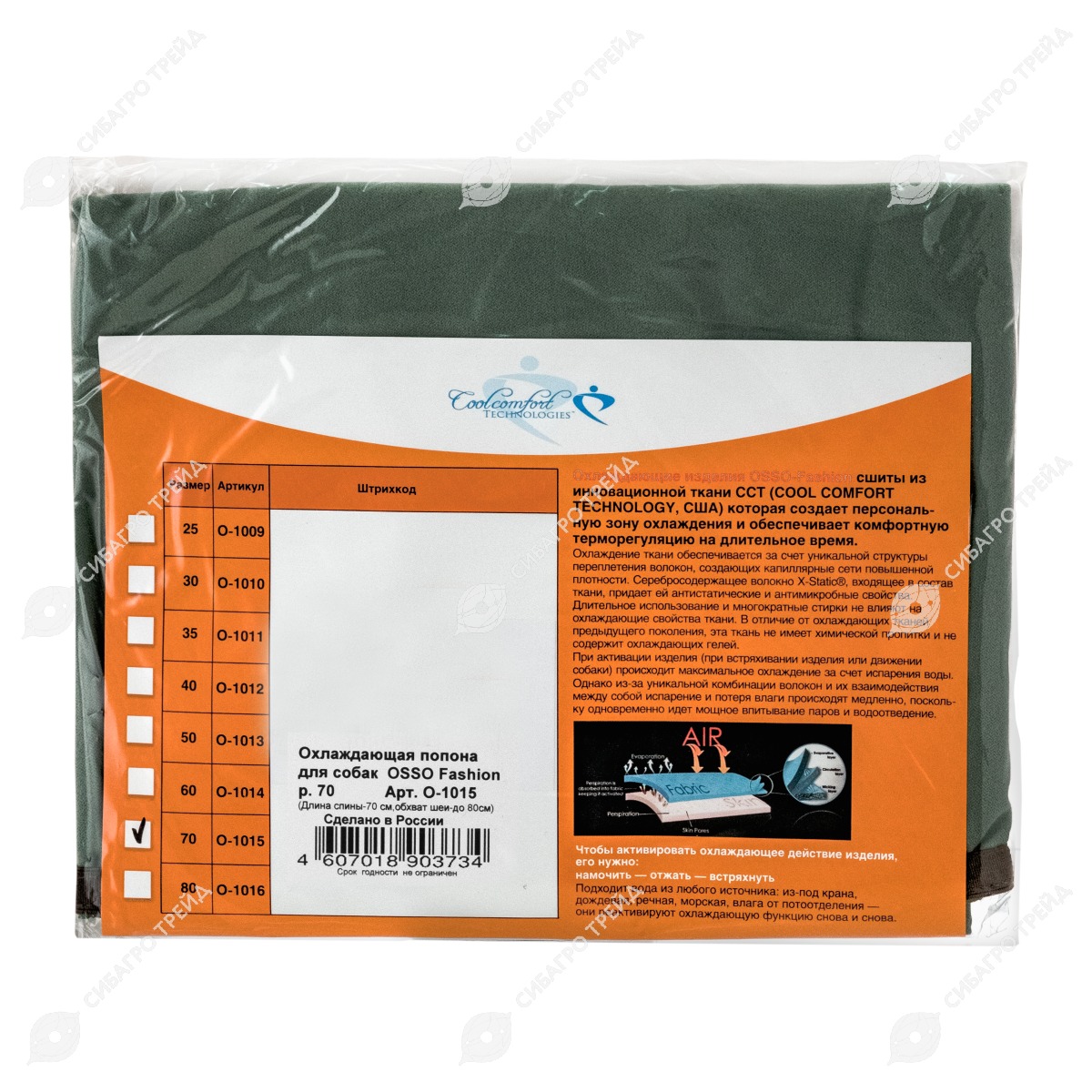 Охлаждающие изделия OSSO Fashion сшиты из инновационной ткани ССТ (COOL COMFORT TECHNOLOGY, США), которая создает персональную зону охлаждения и обеспечивает комфортную терморегуляцию на длительное время .