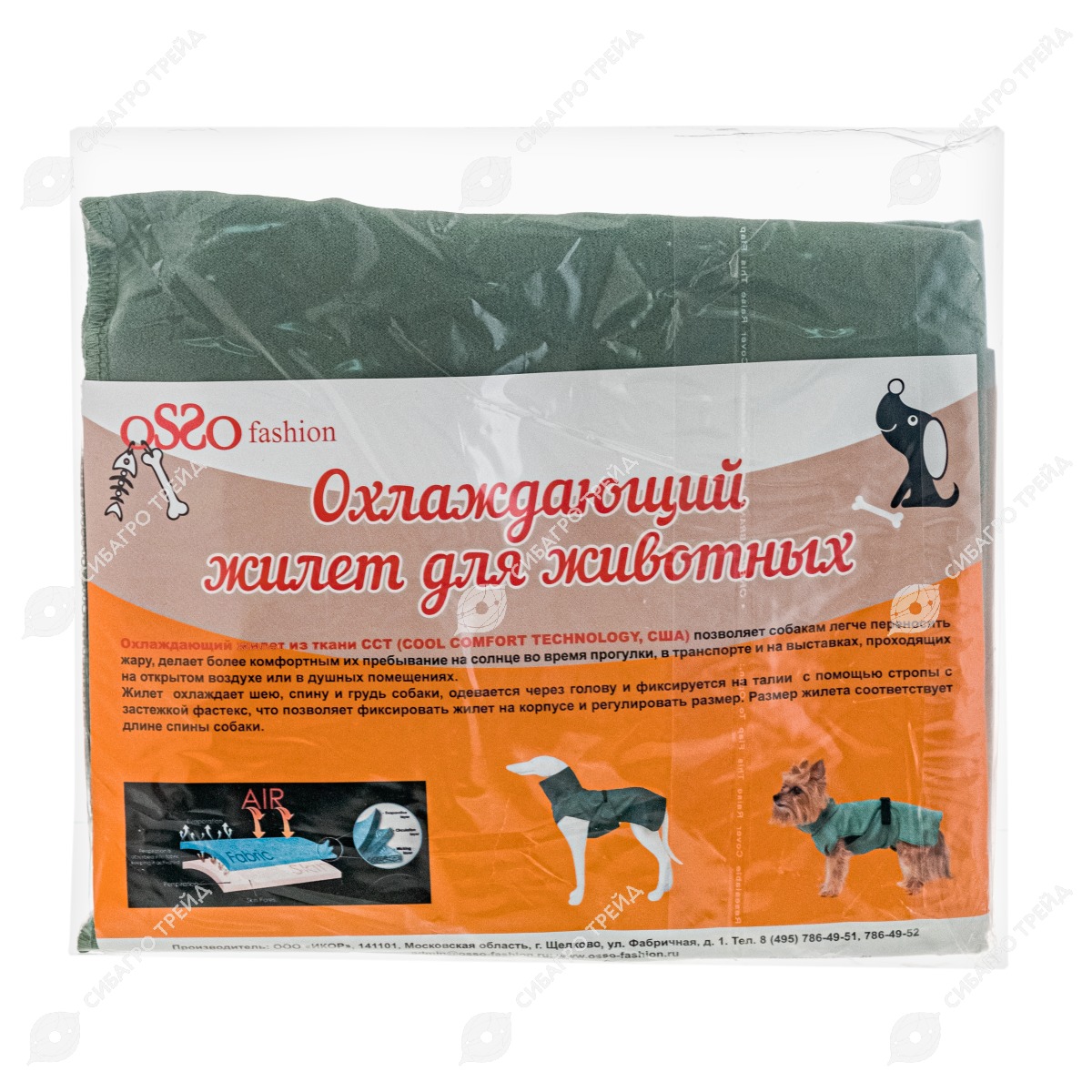 Жилет охлаждает шею, спину и грудь собаки, одевается через голову и фиксируется на талии с помощью стропы с застежкой фастекс, что позволяет фиксировать жилет на корпусе и регулировать размер.