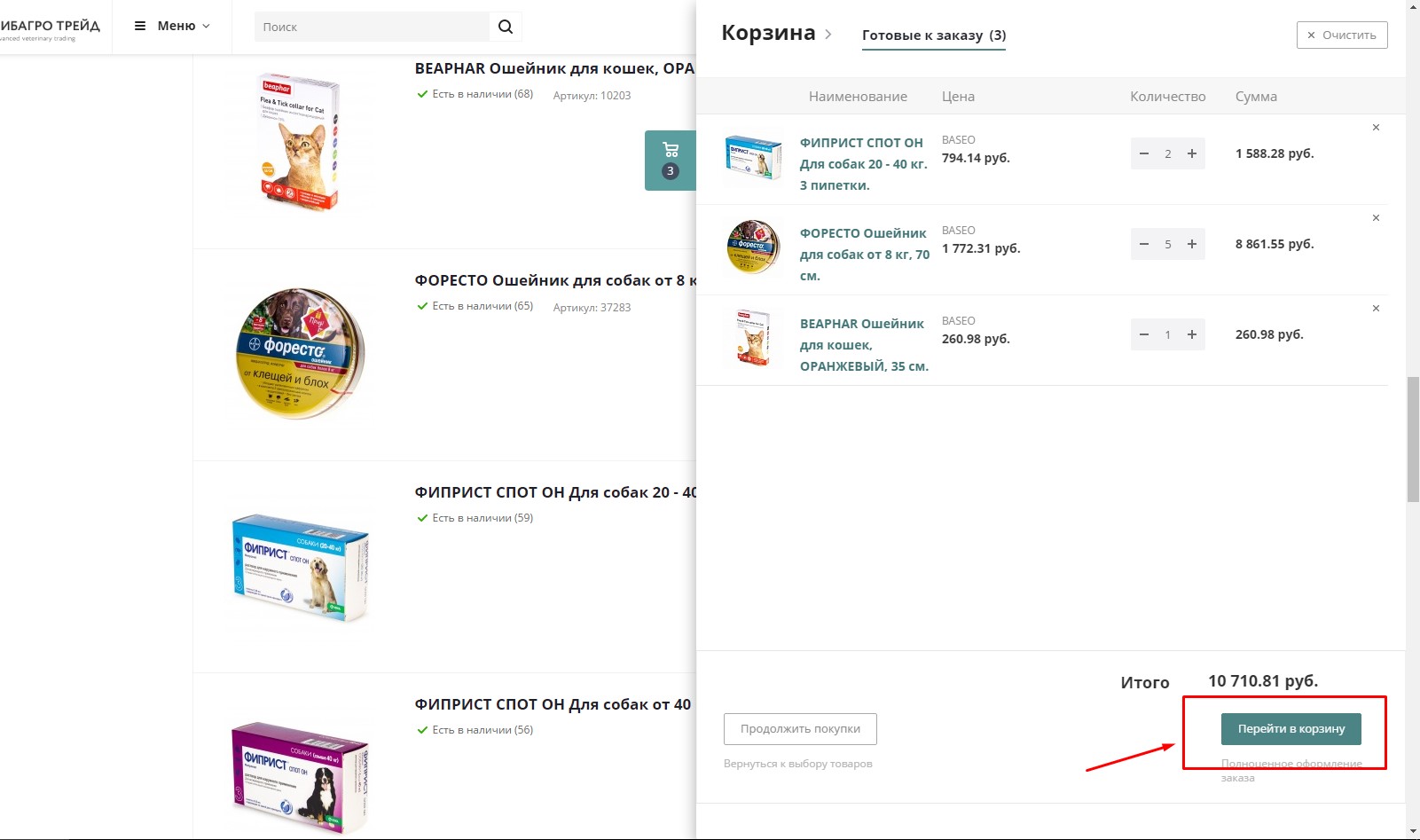 Проверьте правильность заказанных позиций и нажмите кнопку «Оформить заказ».